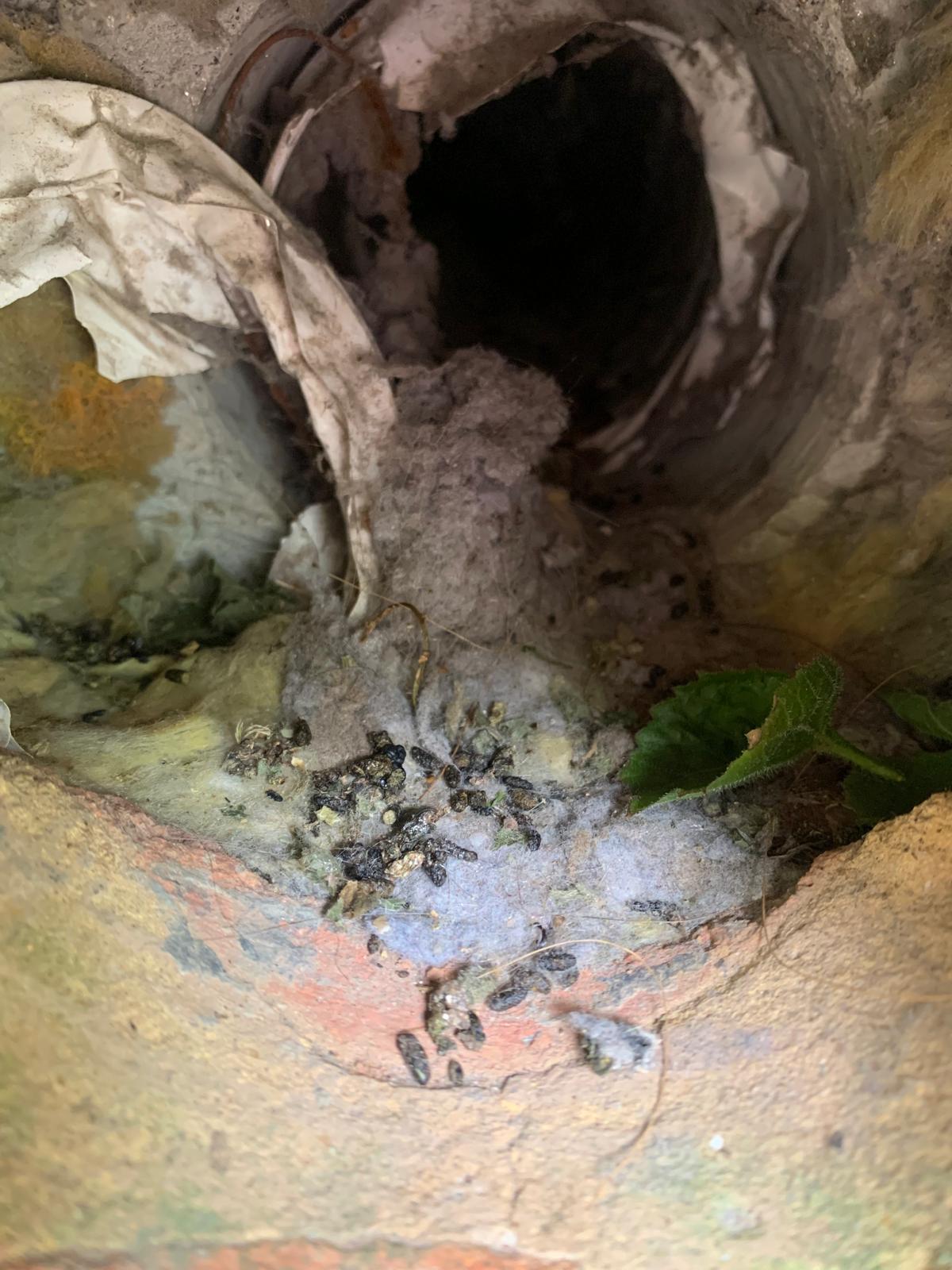 Further inspection revealed clear signs of rodent presence within the pipework, including droppings and debris. The damaged pan connector had weakened the seal between the toilet and the drainage system, making it an easy access route for rats travelling through the drains.